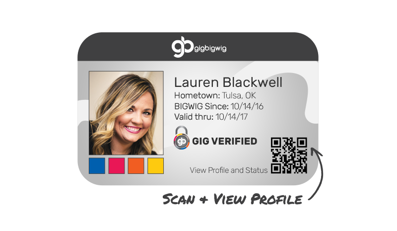 Sign-up today for your Gig Verified™ profile and ID card. Early users will receive membership discounts and exclusive access to new services.